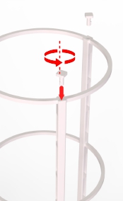 Add one circle between rods. Lower and twist to lock.